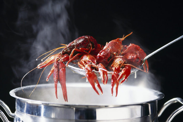 Приготовление. Большую кастрюлю с водой поставить на плиту. Когда вода начнет закипать, туда складываются все приправы. Затем в кипящую воду.отправляются сами раки. Кастрюля накрывается крышкой, а огонь убавляется до среднего уровня.
